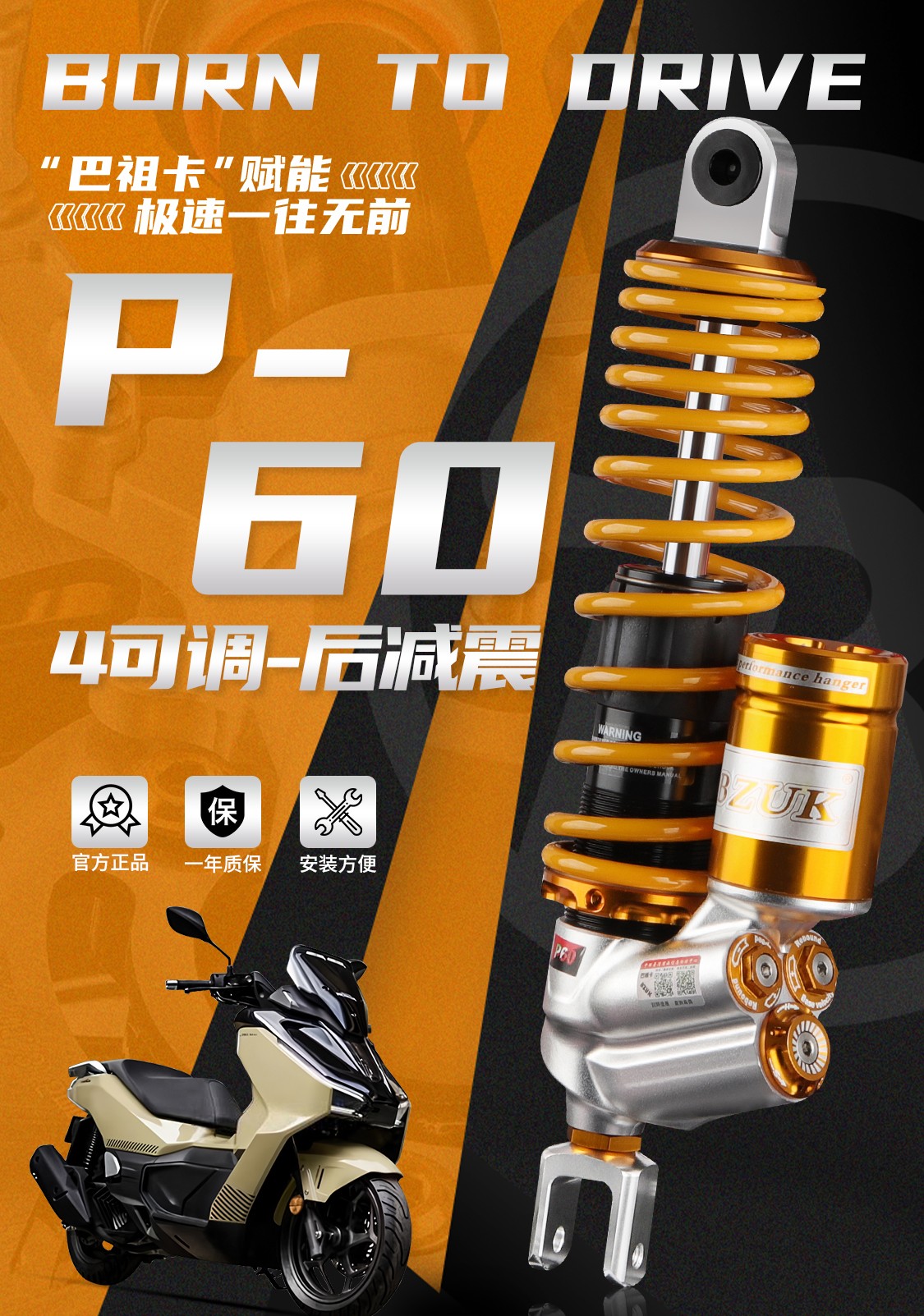 巴祖卡·BZUK 直上适配更便捷丨注重摩托车踏板车减震配件市场。