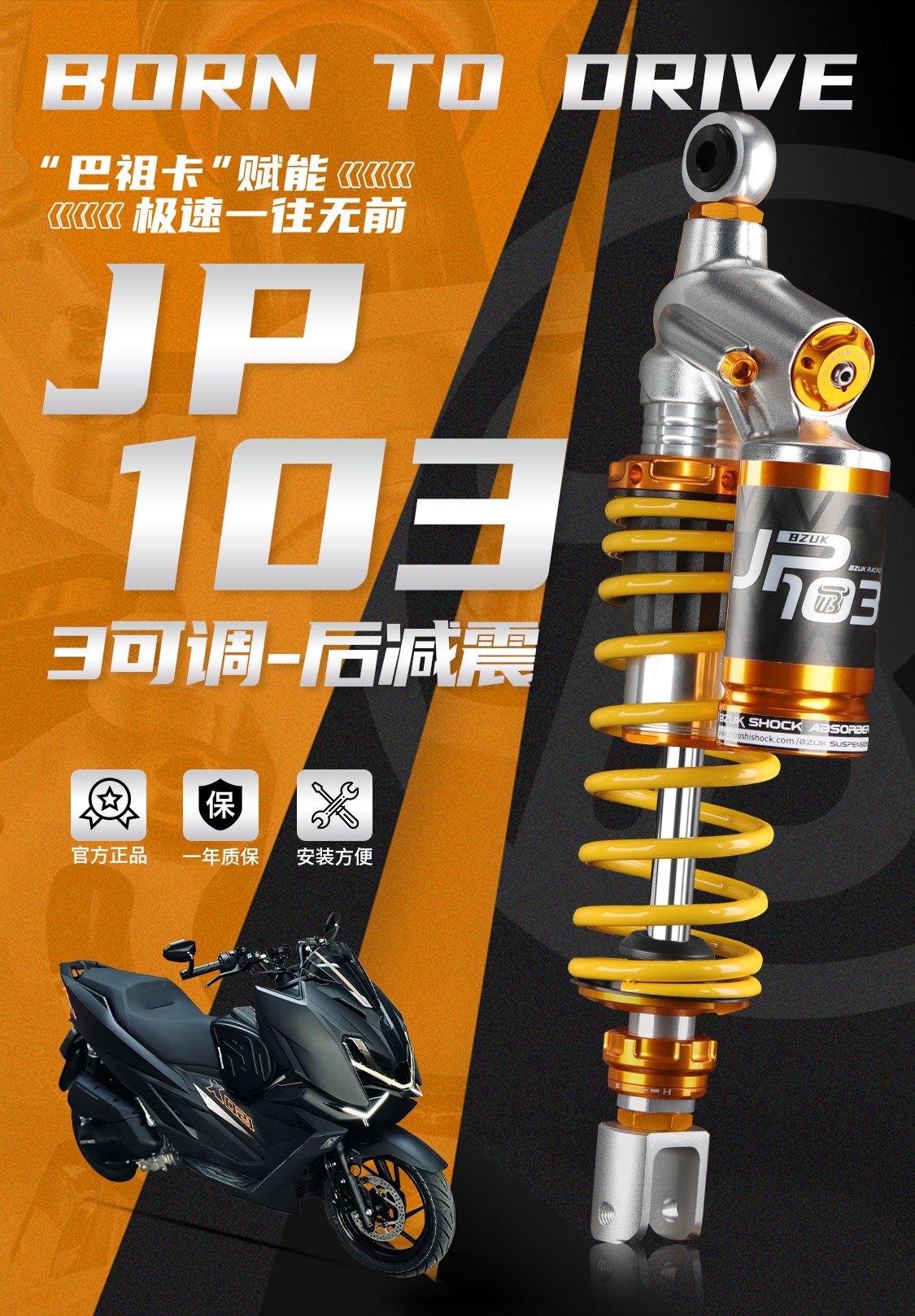 巴祖卡·BZUK 直上适配更便捷丨注重摩托车踏板车减震配件市场。